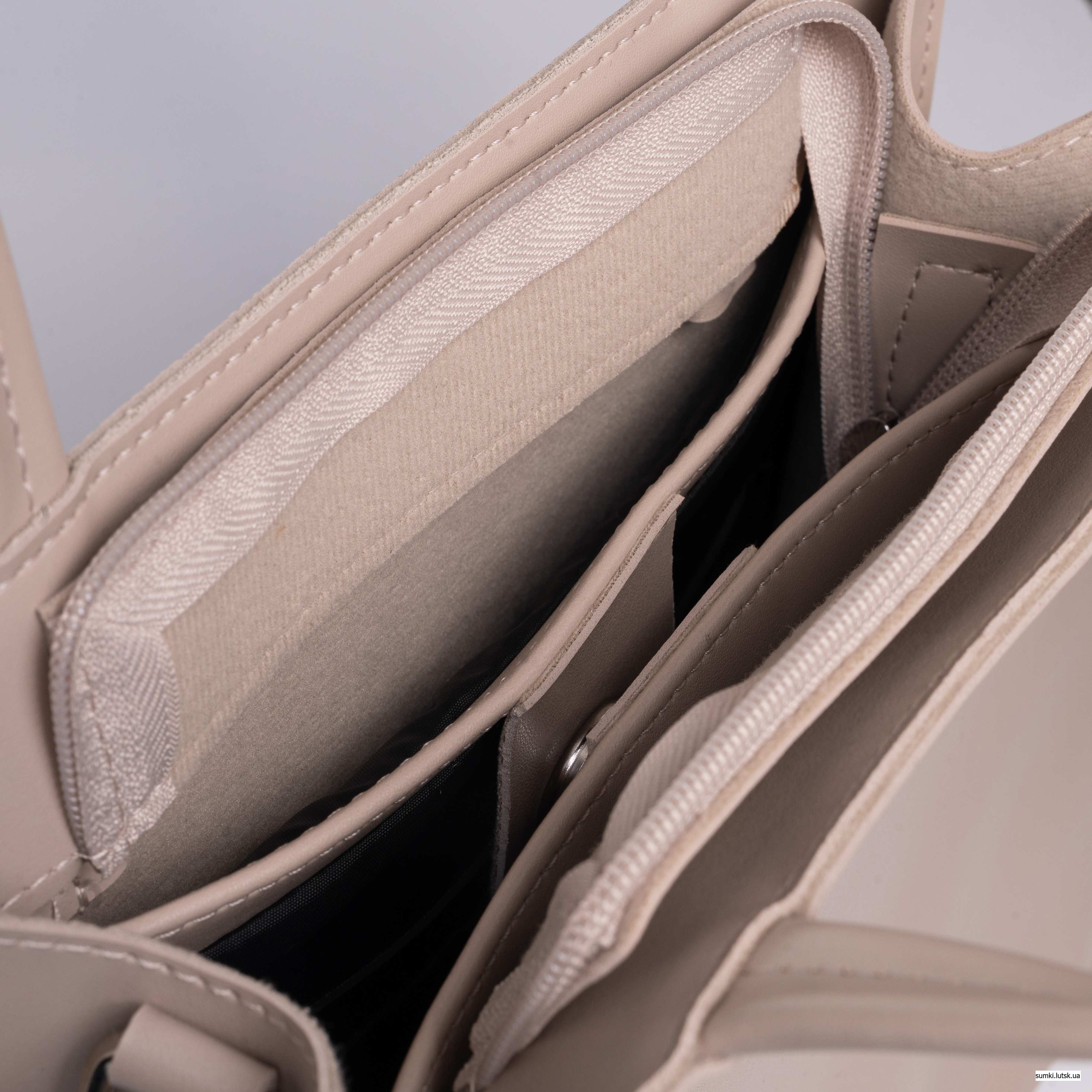 Сумка всередині має одне вмістке відділення. Підкладка сумки завжди використовується з міцного перевіреного текстилю, оскільки ми весь час турбуємось за довготривале використання наших виробів. Зручні кишеньки для мобільного телефону та всіляких дрібничок не дозволять створити у сумці хаос.